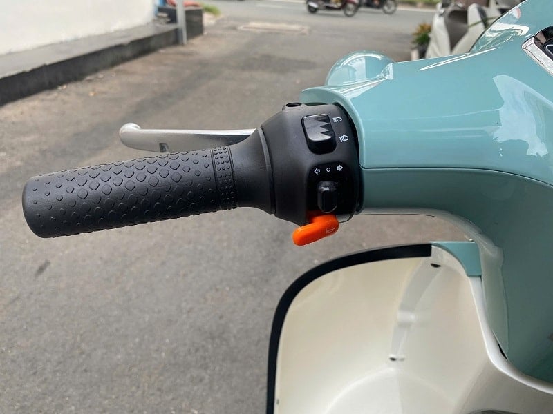 Gương chiếu hậu dạng bo tròn mang hơi hướng Vespa cổ điển, tăng khả năng quan sát phía sau. Phía đuôi xe có tay dắt chắc chắn, hỗ trợ việc dắt, xoay hoặc đỗ xe dễ dàng.