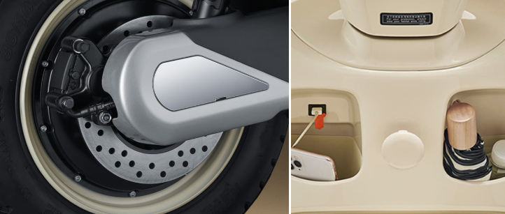 Sàn để chân phẳng và rộng là một điểm cộng lớn, đặc biệt với người dùng nữ. Thiết kế này giúp việc lên xuống xe trở nên thuận tiện, kể cả khi mặc váy hoặc đi giày cao gót. Yên xe được làm dày, bọc chất liệu giả da mịn mang lại tư thế ngồi thoải mái khi di chuyển quãng đường dài trong phố. Honda cũng cung cấp nhiều tùy chọn màu sắc khác nhau, hướng tới nhóm khách hàng trẻ và người dùng đề cao yếu tố thẩm mỹ.