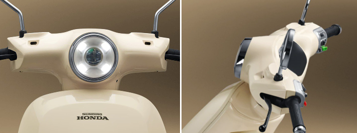 Honda DM7 gây thiện cảm ngay từ cái nhìn đầu tiên nhờ thiết kế mang đậm tinh thần cổ điển. Cụm đèn pha tròn, gương chiếu hậu bo tròn cùng những đường cong mềm mại trên thân xe gợi liên tưởng đến các mẫu scooter châu Âu thanh lịch. Tổng thể xe gọn gàng, cân đối, phù hợp với môi trường đô thị đông đúc và dễ điều khiển với nhiều đối tượng người dùng.