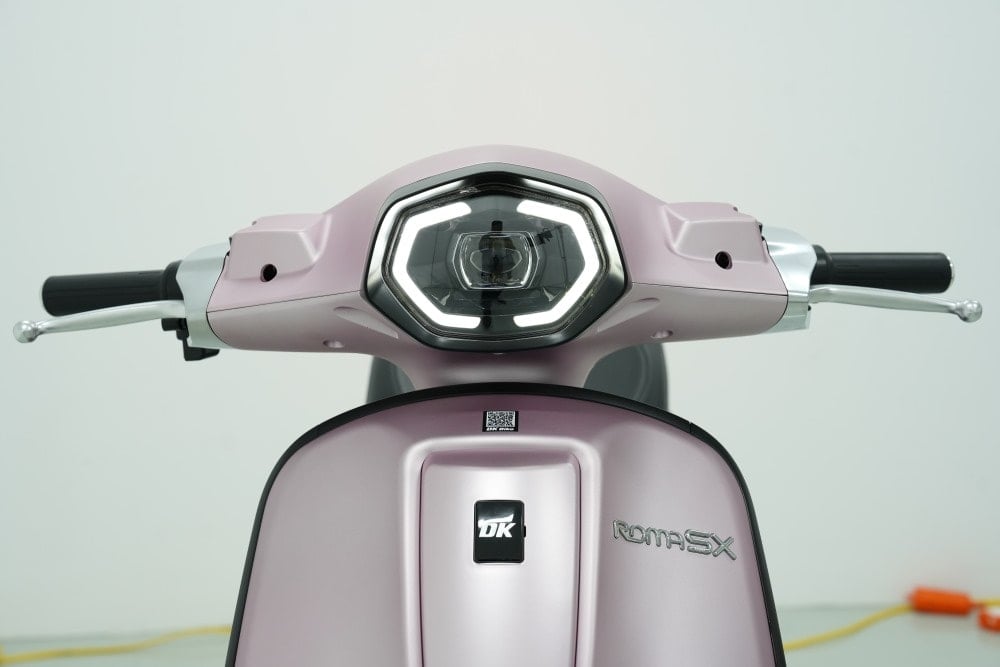 DK Roma SX V2 gây ấn tượng ngay từ ngoại hình với phong cách thiết kế mang hơi hướng Ý: các đường bo tròn mềm mại, tổng thể tinh tế nhưng vẫn tạo hiệu ứng thị giác mạnh. Kiểu dáng xe hướng tới sự thanh lịch, phù hợp với người dùng nữ nhưng không quá “bánh bèo”, vẫn giữ được sự chắc chắn cần thiết cho sử dụng hàng ngày.