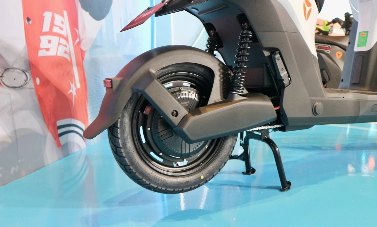 Xe được trang bị phanh cơ trước/sau cho lực phanh nhẹ, mượt; kết hợp hệ thống giảm xóc đạt chuẩn xe máy mang lại cảm giác kiểm soát tốt trong tầm tốc độ cho phép. Phụ kiện đi kèm gồm gương, sạc và hệ thống chống trộm, đáp ứng đầy đủ nhu cầu sử dụng cơ bản.