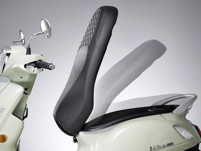 Một trong những điểm đáng chú ý của Like Euro 125 là yên xe dài 725 mm, mặt yên phẳng và kéo dài hơn so với bản tiêu chuẩn. Thiết kế này giúp người lái có tư thế ngồi thoải mái hơn, đồng thời tăng sự êm ái khi chở thêm người phía sau.