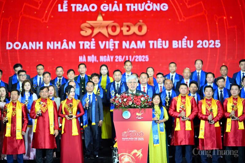 "Chỉ riêng 10 doanh nghiệp Sao Đỏ năm 2025 đã có tổng tài sản gần 3 triệu tỷ đồng, tạo ra doanh thu hơn 214.000 tỷ đồng và nộp ngân sách 13.600 tỷ đồng. Họ hiện diện trong những lĩnh vực then chốt nhất: công nghệ, công nghiệp, tài chính và chuyển đổi số. Đây là minh chứng hùng hồn cho thấy doanh nhân trẻ đã thực sự trở thành lực lượng chủ lực, nắm giữ “ngọn cờ đầu” trong nền kinh tế quốc gia", ông Đặng Hồng Anh nói và nhấn mạnh, những doanh nhân được vinh danh hôm nay chính là những hình mẫu của thế hệ doanh nhân trẻ trong kỷ nguyên mới, có trí tuệ, có khát vọng và quan trọng nhất là có trái tim phụng sự.