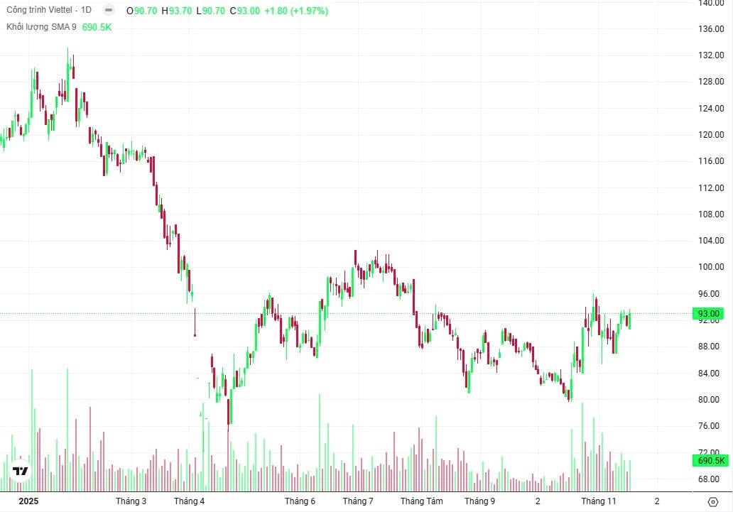 Song hành với đầu tàu VTP, những mã cổ phiếu khác trong hệ sinh thái của Viettel cũng đồng loạt khoác áo xanh. Cụ thể, Cổ phiếu Tổng Công ty CP Công trình Viettel (HOSE: CTR) tăng gần 2% lên mức giá 93.000 đồng. Tuy nhiên ở mức giá này, CTR lại vẫn đang có mức chiết khấu gần 40% so với đầu năm.