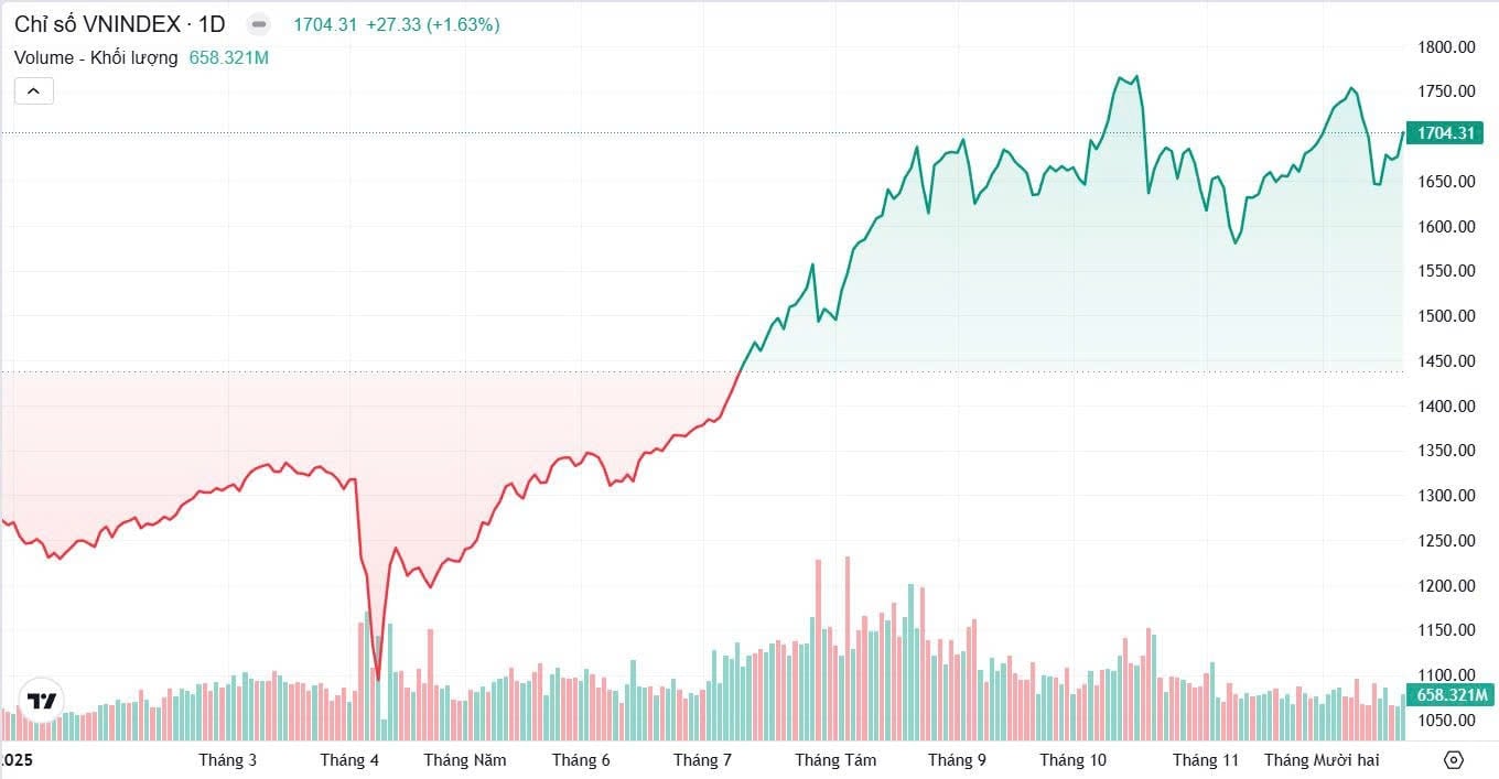 Dòng tiền lan tỏa rộng, nhiều nhóm cổ phiếu liên tục xác lập mặt bằng giá mới. Thế nhưng, giữa nhịp tăng trưởng ấn tượng ấy, không ít cái tên từng được kỳ vọng sẽ dẫn dắt con sóng công nghệ lại tỏ ra lạc nhịp, thậm chí trở thành nỗi thất vọng của nhà đầu tư.