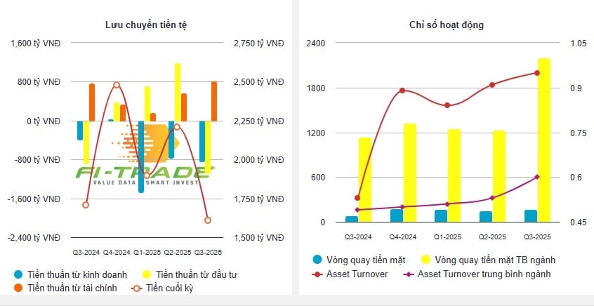 Hệ quả là tỷ lệ chuyển đổi lợi nhuận thành tiền mặt thấp, khiến công ty phụ thuộc nhiều hơn vào tín dụng ngắn hạn. Dư nợ vay và nợ thuê tài chính ngắn hạn tại ngày 30/9/2025 tăng vọt lên 3.800 tỷ đồng, từ mức chưa đến 3.000 tỷ ở đầu kỳ.
