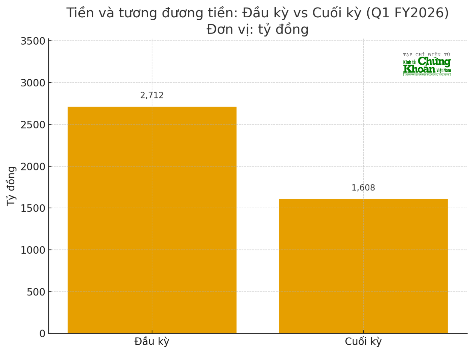 Chi phí tài chính vì thế tăng mạnh, riêng chi phí lãi vay trong 3 tháng vừa qua ở mức 44,5 tỷ đồng, tăng mạnh so với cùng kỳ. Dù tỷ lệ này vẫn trong ngưỡng kiểm soát, nó cho thấy chi phí vốn đang ăn mòn một phần lợi nhuận gộp, nhất là trong bối cảnh dòng tiền hoạt động vẫn âm kéo dài.