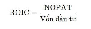 Trong đó, NOPAT là lợi nhuận từ hoạt động kinh doanh sau thuế, phản ánh phần lợi nhuận tạo ra từ hoạt động chính của doanh nghiệp mà không bao gồm các khoản thu nhập hoặc chi phí tài chính. Vốn đầu tư là phần vốn doanh nghiệp sử dụng cho hoạt động sản xuất và kinh doanh, bao gồm vốn chủ sở hữu cùng với các khoản vay phục vụ hoạt động dài hạn, sau khi đã loại trừ những tài sản không liên quan đến kinh doanh.