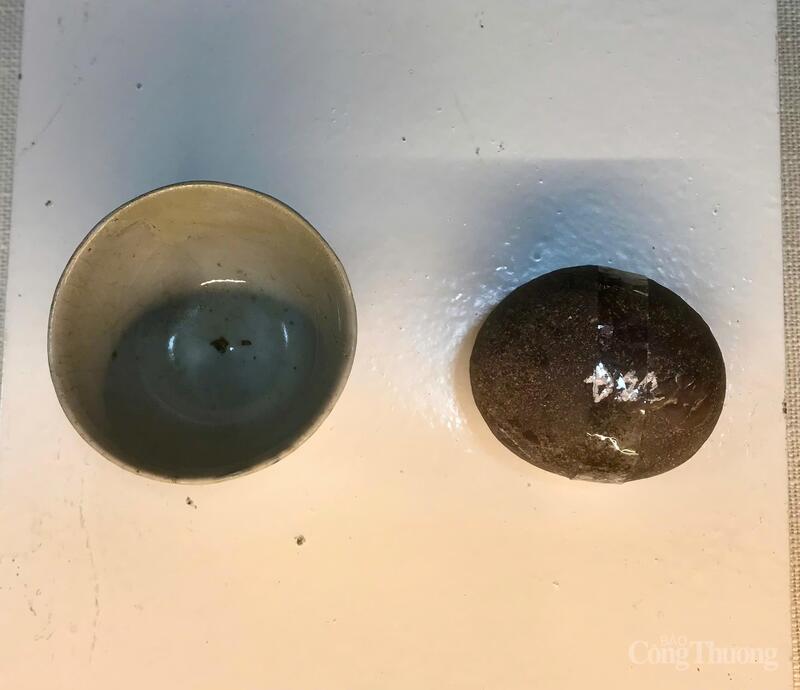 Chén Chủ tịch Hồ Chí Minh sử dụng trong thời gian Người ở hang Sống Mu, xã Hồng Việt, huyện Hoà An (Cao Bằng), năm 1942 và hòn đá Chủ tịch Hồ Chí Minh dùng tập luyện trong thời gian ở Pác Bó (Cao Bằng), năm 1941. Ảnh: Hoa Quỳnh