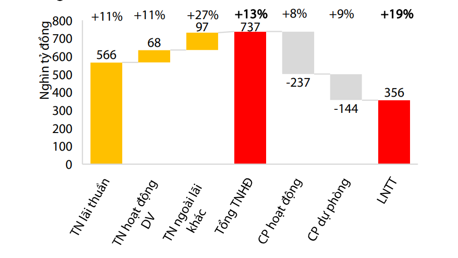 Không chỉ dựa vào tín dụng, thu nhập ngoài lãi tiếp tục đóng vai trò ngày càng quan trọng trong bức tranh lợi nhuận của ngành ngân hàng. Năm 2025, thu nhập từ hoạt động dịch vụ tăng khoảng 25%, với đóng góp đáng kể từ các ngân hàng có lợi thế về bancassurance và dịch vụ ngân hàng đầu tư như Techcombank, MBBank, VPBank và HDBank.