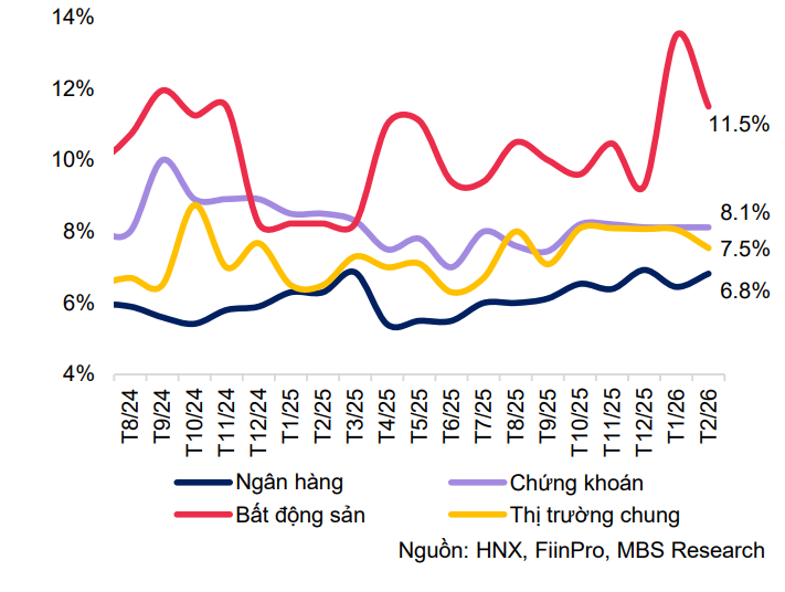 margin: 15px auto;" />Theo báo cáo của MBS Research, tổng giá trị phát hành trái phiếu doanh nghiệp trong tháng 2/2026 đạt khoảng 4,8 nghìn tỷ đồng, tăng 29% so với tháng trước và tăng hơn 100% so với cùng kỳ. Lũy kế 2 tháng đầu năm, quy mô phát hành đạt 8,5 nghìn tỷ đồng, tăng 7,4% so với cùng kỳ.