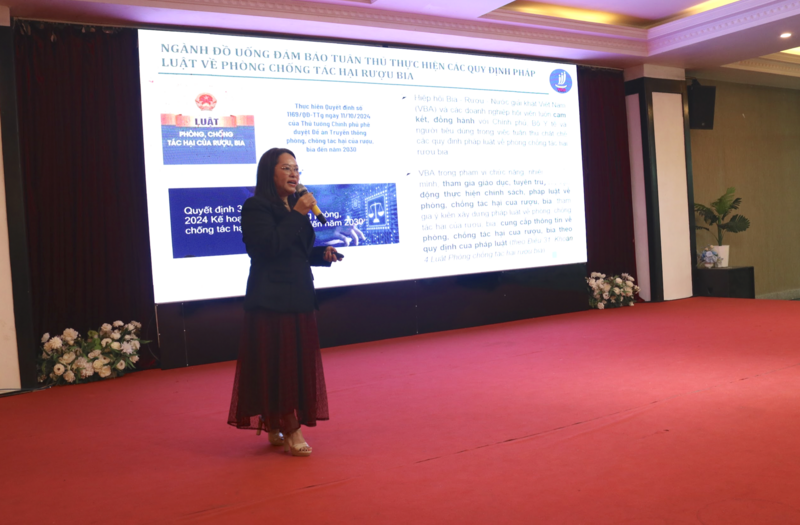 Phát biểu tại hội thảo, bà Trịnh Thị Vân Giang - đại diện VBA cho biết, là một trong những ngành hàng cung cấp các sản phẩm đồ uống đa dạng đến người tiêu dùng, gồm cả các sản phẩm có chứa cồn như rượu, bia, VBA và các doanh nghiệp hội viên luôn cam kết, đồng hành với người tiêu dùng trong việc tuân thủ chặt chẽ Luật Phòng, chống tác hại của rượu, bia.
