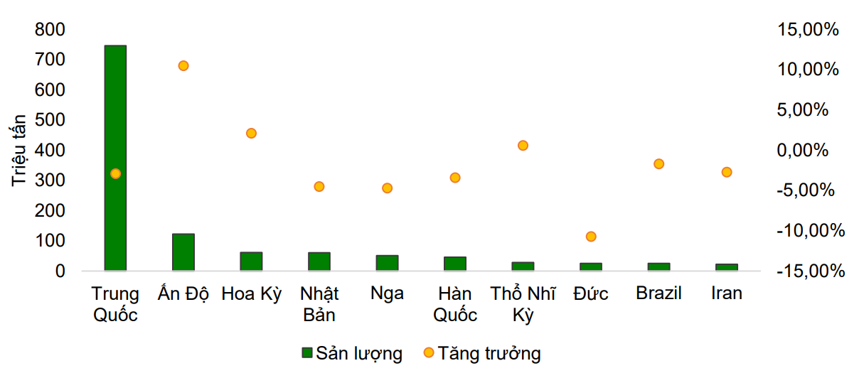 Trên phạm vi quốc tế, ghi nhận tổng nguồn cung thép 9 tháng năm 2025 đạt 1.373,8 triệu tấn, giảm 1,6% so với cùng kỳ; riêng Trung Quốc giảm tới 2,9% khi Chính phủ nước này tiếp tục siết chặt công suất để kiểm soát dư thừa và đáp ứng yêu cầu “xanh hóa” sản xuất. Tuy nhiên, việc OECD dự báo công suất toàn cầu có thể tăng thêm 165 triệu tấn trong giai đoạn 2025–2027 lại khiến nguy cơ thừa cung không những chưa được giải quyết mà còn có nguy cơ trầm trọng hơn. Trong khi nhu cầu thép thế giới chỉ tăng rất chậm, khoảng 0,7%/năm đến 2030, sức ép lên giá thép và biên lợi nhuận ngày càng lớn, buộc nhiều quốc gia phải dựng lên các hàng rào thuế quan mạnh hơn để bảo vệ ngành sản xuất trong nước.