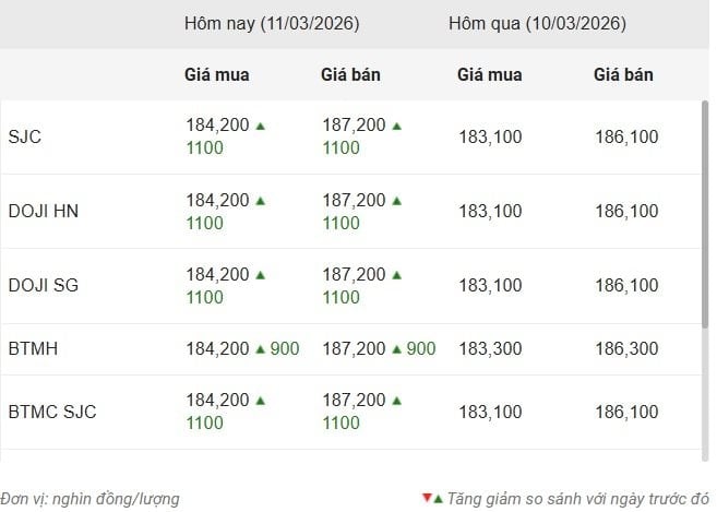 So với chốt phiên trước, ở cả chiều mua và chiều bán ra, Công ty Vàng bạc đá quý Sài Gòn (SJC), Tập đoàn Vàng bạc Đá quý DOJI, Bảo Tín Minh Châu và PNJ cùng tăng 1,1 triệu đồng; trong khi giá vàng của Bảo Tín Mạnh Hải tăng 900 nghìn đồng và giá vàng Phú Quý tăng cao nhất đến 1,3 triệu đồng.