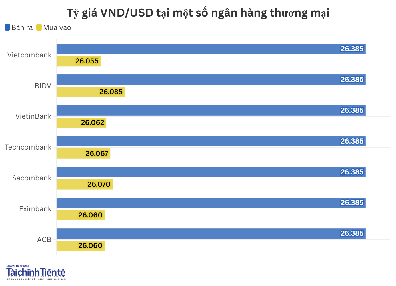 Hiện, giá mua thấp nhất ở mức 26.055 VND/USD, giá mua cao nhất ở mức 26.085 VND/USD. Giá bán ra được các ngân hàng đồng loạt niêm yết ở mức 26.385 VND/USD.