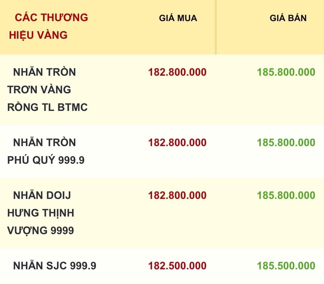 PNJ niêm yết giá vàng miếng mua vào-bán ra ở mức 182,8-185,8 triệu đồng/lượng, giảm 1,4 triệu đồng ở cả chiều mua lẫn chiều bán so với chốt phiên hôm qua.