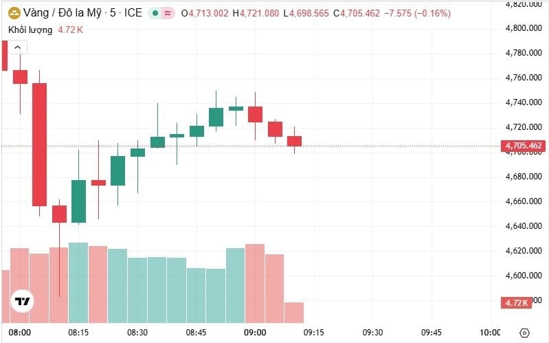 Thời điểm 9h10 theo giờ Việt Nam, giá vàng thế giới giao ngay ở mức 4.721 USD/ounce, giảm 458 USD so với phiên cuối tuần trước. Hiện, giá vàng thế giới quy đổi sang tiền Việt Nam đồng có giá là 148,7 triệu đồng/lượng.