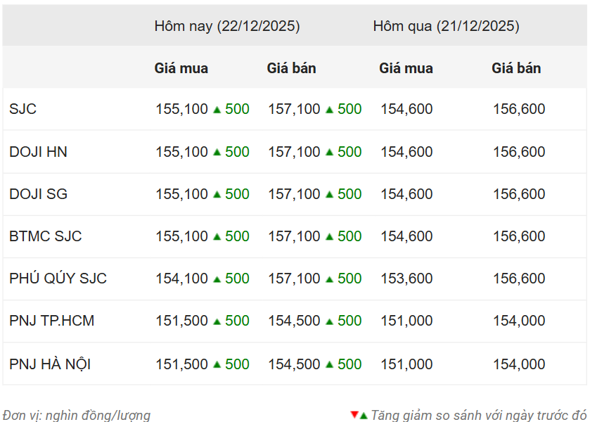 margin: 15px auto;" />Công ty Vàng bạc đá quý Sài Gòn (SJC), Tập đoàn Vàng bạc Đá quý DOJI và Bảo Tín Minh Châu cùng niêm yết giá vàng miếng SJC mua vào-bán ra ở mức 155,1-157,1 triệu đồng/lượng, tăng 500.000 đồng ở cả chiều mua và chiều bán ra so với chốt phiên trước.