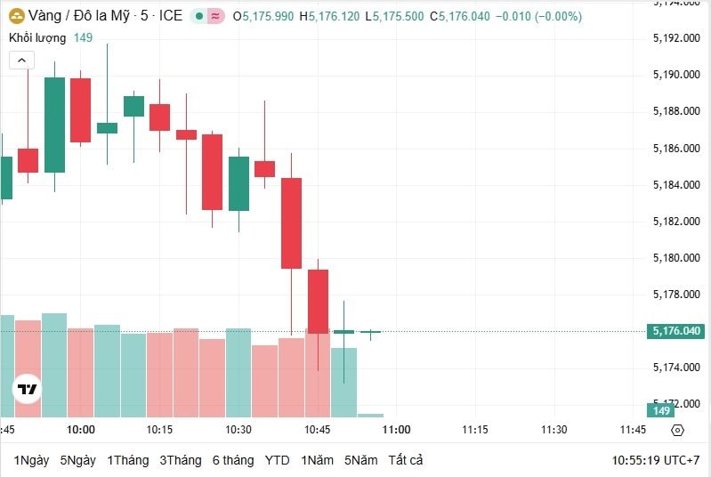 Thời điểm 10h55 theo giờ Việt Nam, giá vàng thế giới giao ngay ở mức 5.176 USD/ounce. Hiện, giá vàng thế giới quy đổi sang tiền Việt Nam đồng có giá là 164,1 triệu đồng/lượng.
