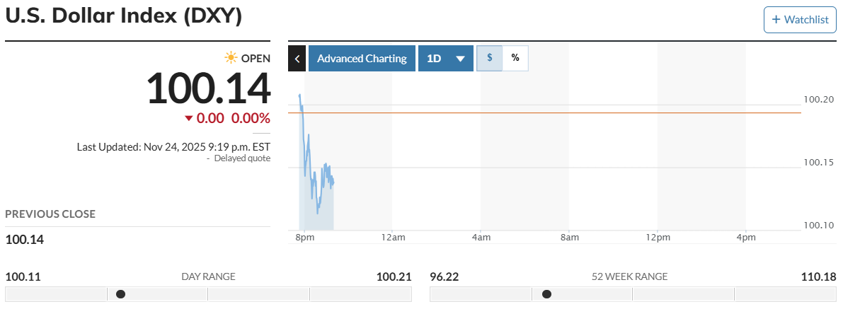 Đồng USD tiếp tục xu hướng đi ngang sang phiên thứ 4 liên tiếp khi những phát biểu ôn hòa từ các quan chức Ngân hàng Dự trữ Liên bang Mỹ (FED) củng cố kỳ vọng về một đợt cắt giảm lãi suất trong tương lai gần. Thống đốc FED Christopher Waller bày tỏ ủng hộ việc cắt giảm lãi suất vào tháng 12, viện dẫn rủi ro ngày càng tăng trên thị trường lao động và lặp lại quan điểm của Chủ tịch FED San Francisco Mary Daly và Chủ tịch FED New York John Williams. Ông Waller cũng lưu ý rằng, các quyết định chính sách trong năm tới sẽ phụ thuộc nhiều vào làn sóng dữ liệu bị trì hoãn sau đợt đóng cửa chính phủ.