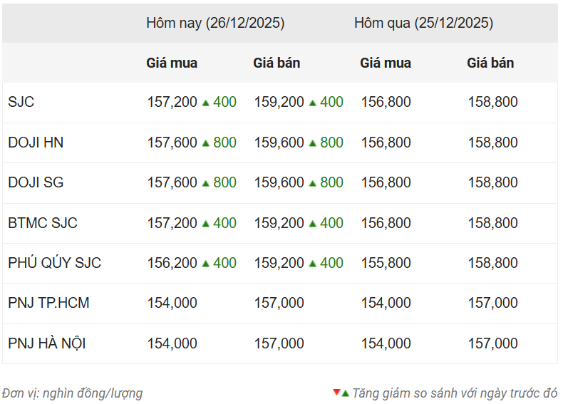 margin: 15px auto;" />Công ty Vàng bạc đá quý Sài Gòn (SJC) và Bảo Tín Minh Châu cùng niêm yết giá vàng miếng SJC mua vào-bán ra ở mức 157,2-159,2 triệu đồng/lượng, tăng 400.000 đồng ở cả chiều mua và chiều bán ra so với chốt phiên trước.