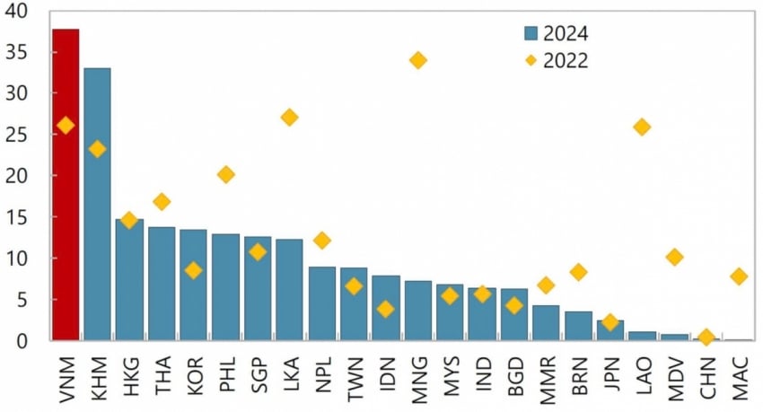 Hình 1: Lưu chuyển tiền số qua biên giới của các quốc gia trên thế giới (% GDP)