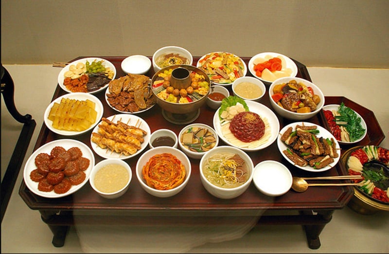Mâm cỗ ngày Tết của người Hàn Quốc được đánh giá khá cầu kỳ và phong phú với nhiều món ăn truyền thống như mandu (bánh bao Hàn Quốc), dduk guk (súp bánh gạo cắt lát mỏng), galbijjim (sườn bò kho) hay japchae (miến trộn).