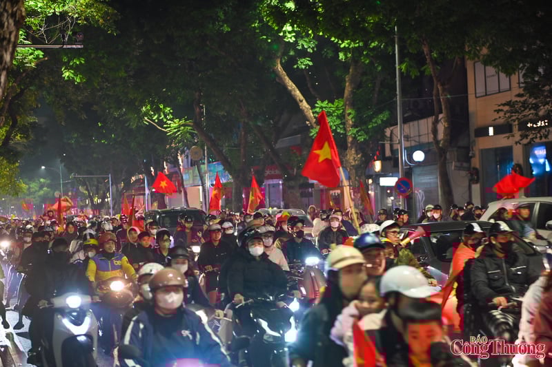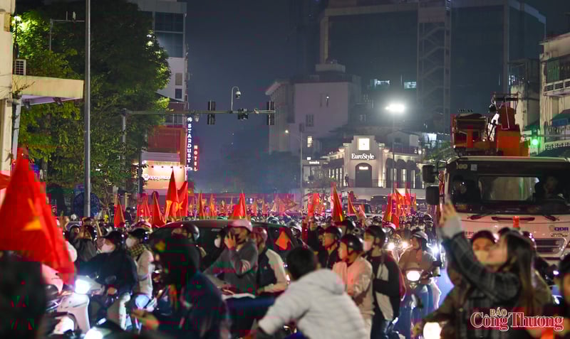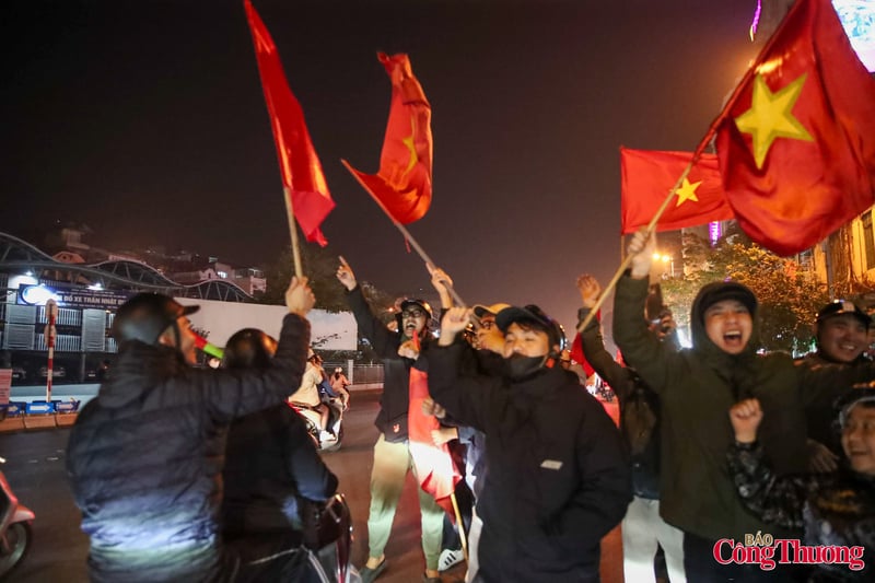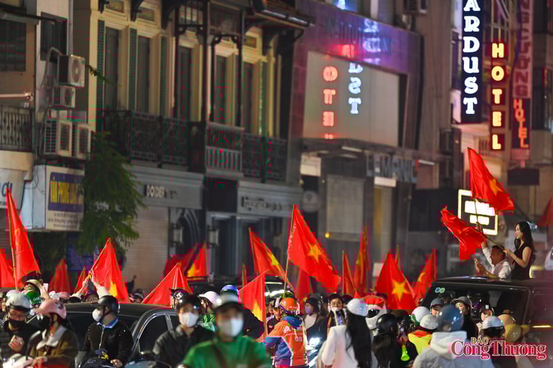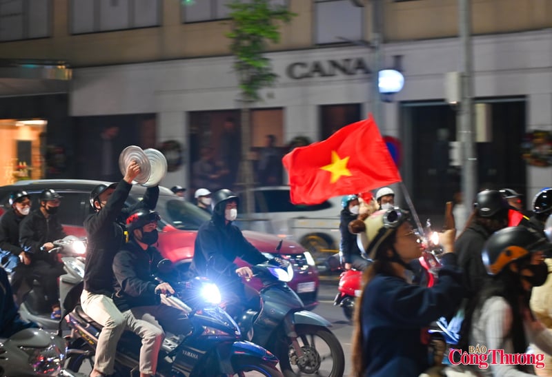Nhiều tuyến phố ở Hà Nội vang tiếng hò hét ăn mừng chiến thắng.