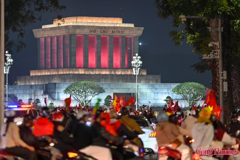 Trong đêm "không ngủ" mừng chiến tích của bóng đá nước nhà, hàng nghìn cổ động viên phấn khích nhưng không quên chấp hành luật giao thông. Hình ảnh người đi đường dừng đèn đỏ thẳng tắp, không chạm vạch kẻ được ghi nhận trên phố Hai Bà Trưng (Hà Nội).