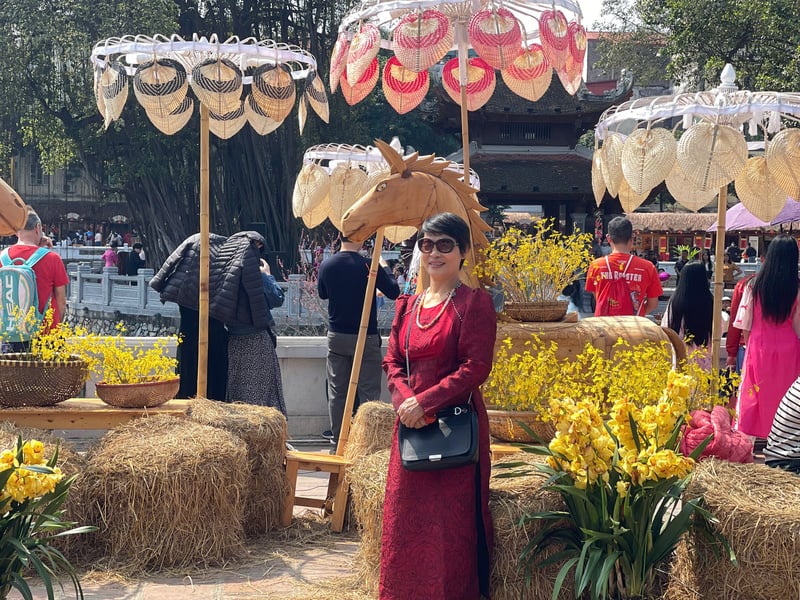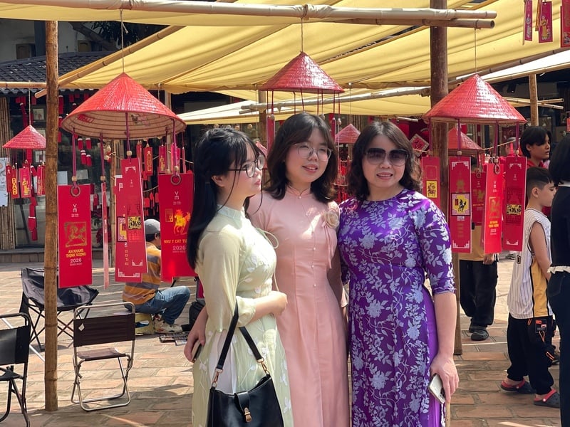 Hội chữ Xuân Văn Miếu 2026 vì thế vượt lên ý nghĩa của một lễ hội đầu năm. Trong sắc xuân rộn ràng, nhiều người dân lựa chọn khoác lên mình tà áo dài truyền thống, góp phần làm nổi bật vẻ đẹp văn hóa Việt giữa không gian di tích nghìn năm. Ảnh: Mai Linh