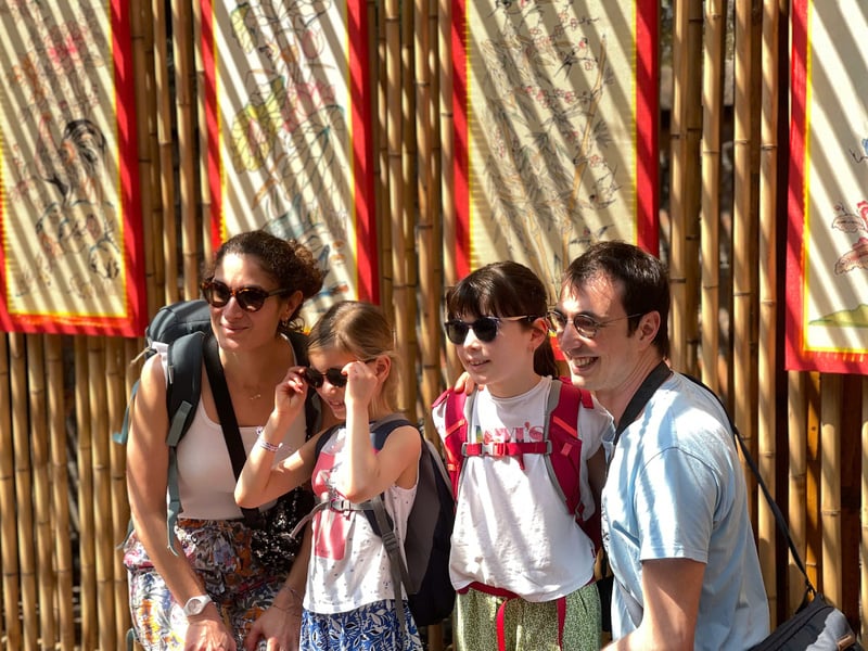 Chị Nguyễn Uyển Như (phường Tây Hồ, Hà Nội - bên phải) cho biết, nhiều năm nay gia đình chị vẫn duy trì thói quen đến Văn Miếu du xuân đầu năm vì có nhiều cảnh đẹp và dâng lễ trước ban thờ Khổng Tử, các bậc hiền nhân, đồng thời xin chữ cầu mong một năm mới bình an, con cháu trong gia đình học tập tiến bộ. Ảnh: Mai Linh