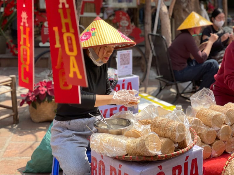 Bên cạnh các hoạt động văn hóa, khu ẩm thực với những món ăn quen thuộc của Hà Nội như phở, bún chả, bún riêu, kẹo kéo, bò bía… cũng thu hút đông đảo du khách ghé thăm, nghỉ chân sau hành trình tham quan. Ảnh: Mai Linh