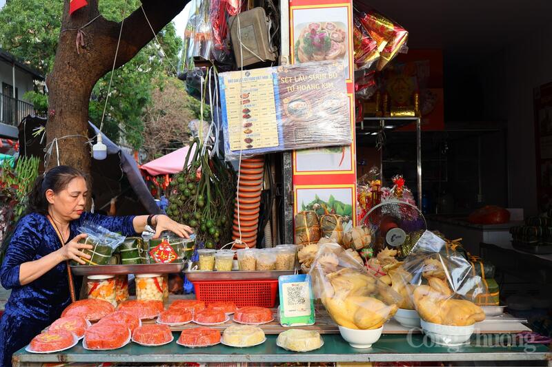 Các món ăn truyền thống như nem rán có giá 60.000 - 80.000 đồng/10 cái, nộm 25.000 đồng/đĩa và xôi gấc khoảng 30.000 đồng/đĩa.