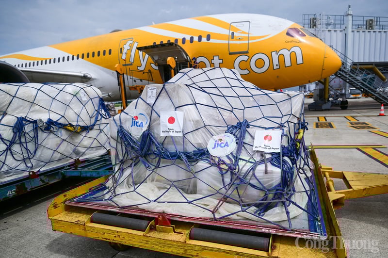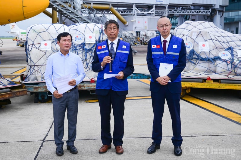 Tham gia lễ bàn giao hàng hóa tại sân bay Nội Bài trưa 13/10 có Phó Cục trưởng Cục Quản lý Đê điều và Phòng chống thiên tai Nguyễn Văn Tiến, Đại sứ Nhật Bản tại Việt Nam Ito Naoki và Trưởng Đại diện Cơ quan Hợp tác quốc tế Nhật Bản - JICA tại Việt Nam Kobayashi Yosuke.