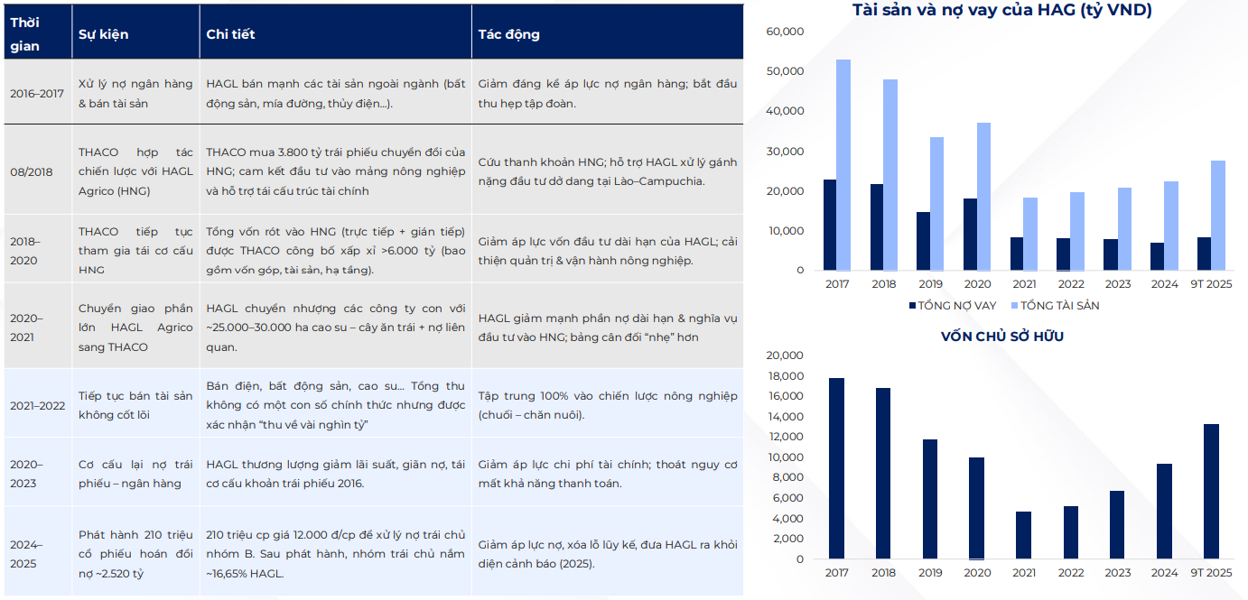 Tuy nhiên, ít ai biết doanh nghiệp này đã phải trải qua gần mười năm tái cơ cấu và thu hẹp hoạt động để có được nền tảng như ngày hôm nay. Từ tập đoàn đa ngành từng hiện diện ở bất động sản, thủy điện, mía đường đến những năm ngập trong nợ nần, HAG đã rút gọn cấu trúc xuống một trụ cột duy nhất là nông nghiệp. Và chính sự đơn giản hóa này trở thành điểm khởi đầu cho chu kỳ hồi phục.