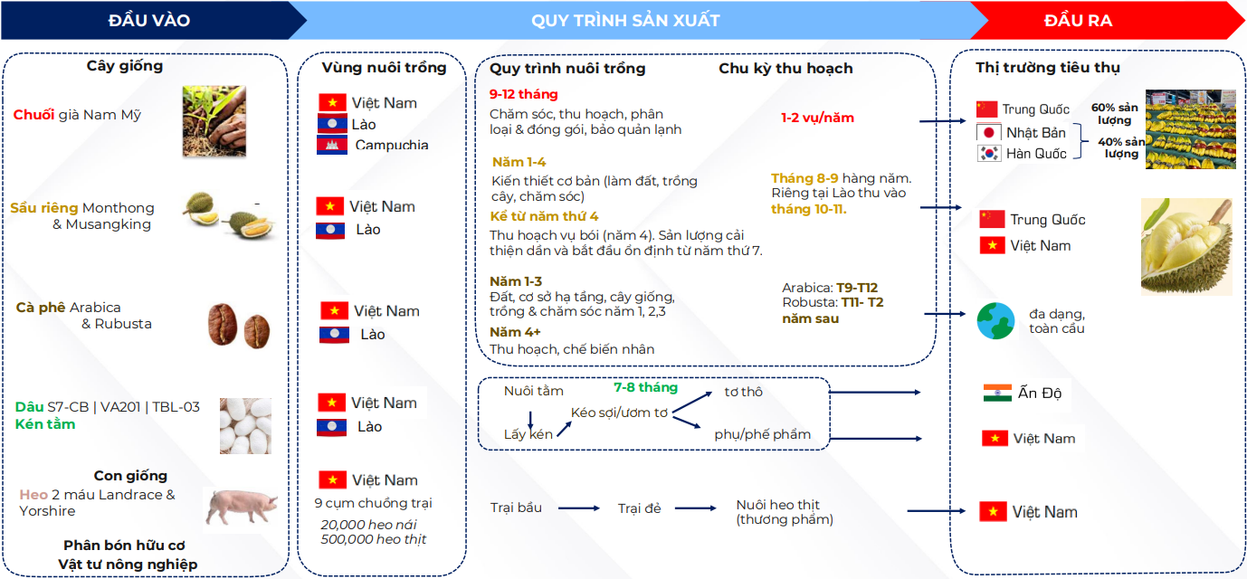 Nếu giai đoạn 2016–2021 là quá trình tái cơ cấu tài chính, thì từ 2022 trở đi là thời kỳ HAG định hình chiến lược nông nghiệp khép kín. Mô hình “4 cây – 1 con” với chuối, sầu riêng, dâu tằm, cà phê và heo trở thành trục chính, tạo ra một vòng tuần hoàn giữa trồng trọt và chăn nuôi.