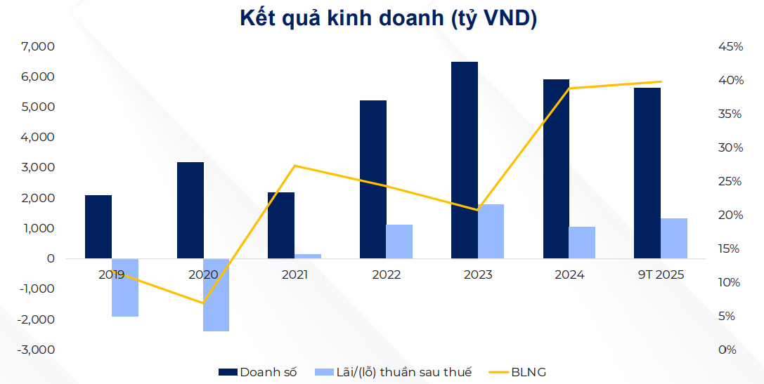 Doanh thu năm 2025 dự kiến tăng hơn 33%, biên lợi nhuận gộp duy trì 39%, chi phí quản lý và bán hàng khoảng 8% doanh thu. Lợi nhuận sau thuế cả năm ước đạt 2.800 tỷ đồng, trong đó 552 tỷ đồng đến từ hoàn nhập dự phòng trái phiếu – yếu tố giúp cải thiện vốn chủ sở hữu và đưa kết quả kinh doanh vượt kế hoạch.
