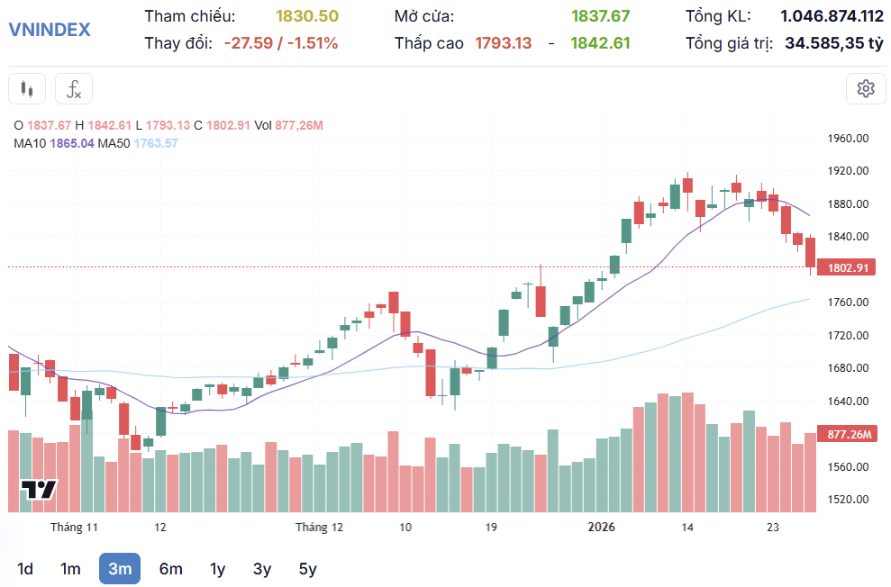 (Banker.vn) Bất chấp VN-Index nỗ lực tìm điểm cân bằng, áp lực bán tháo tại nhóm Vingroup đã đẩy chỉ số về sát mốc 1.800 điểm trong phiên hôm nay (ngày 28/1).