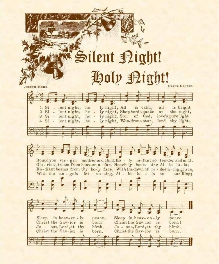 Ít ai biết rằng “Silent Night” (Đêm thánh vô cùng) chính là một trong những bản nhạc Giáng sinh lâu đời nhất còn được hát cho đến ngày nay. Ca khúc ra đời năm 1818 tại Áo, do linh mục Joseph Mohr viết lời và Franz Xaver Gruber sáng tác giai điệu.