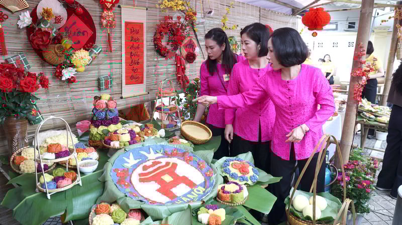 Các hội viên làng nghề trình bày mâm xôi tạo hình công phu tại Lễ hội Xôi Phú Thượng lần thứ 9