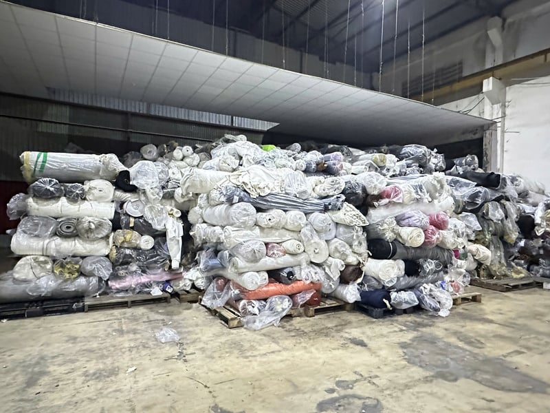 Kho hàng chứa hơn 5.400 cuộn vải với tổng trọng lượng trên 105 tấn.