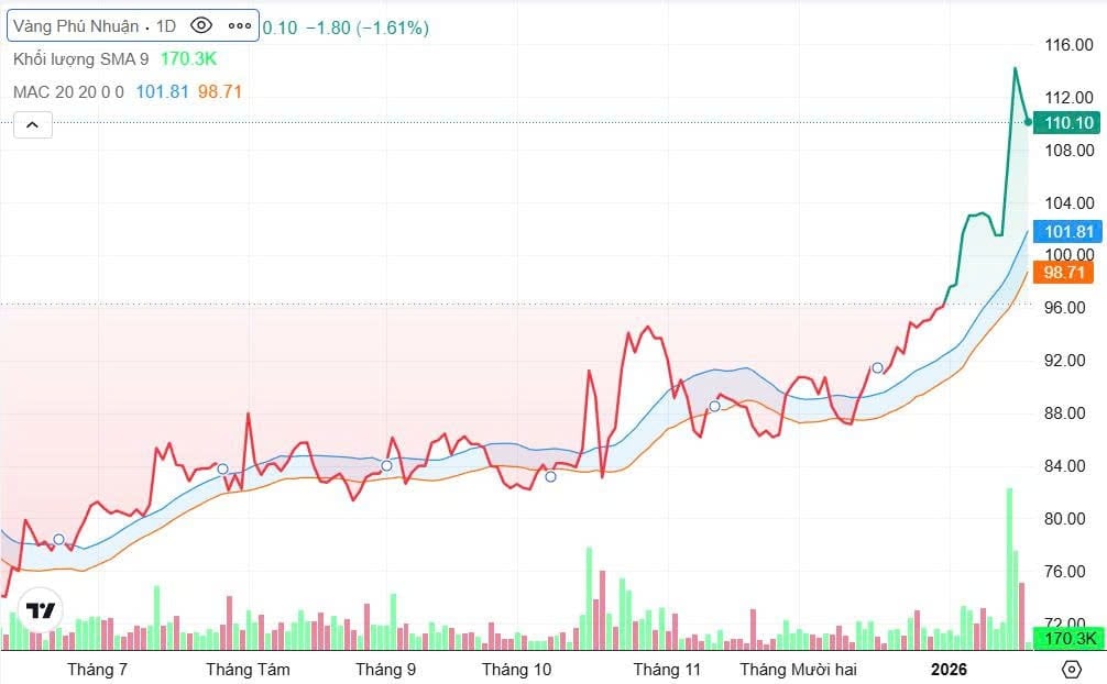 Với mức giá này, vốn hóa thị trường của PNJ đã vượt ngưỡng 38.000 tỷ đồng, tiếp tục duy trì vị thế là một trong những doanh nghiệp bán lẻ trang sức lớn nhất trên sàn.