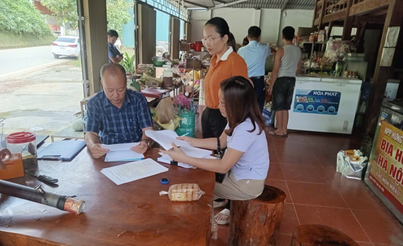 Lực lượng QLTT Thanh Hóa tuyên truyền, ký cam kết về lĩnh vực an toàn thực phẩm trong dịp Tết Trung thu năm 2025 trên địa bàn xã Quan Sơn. Ảnh: QLTT Thanh Hóa.