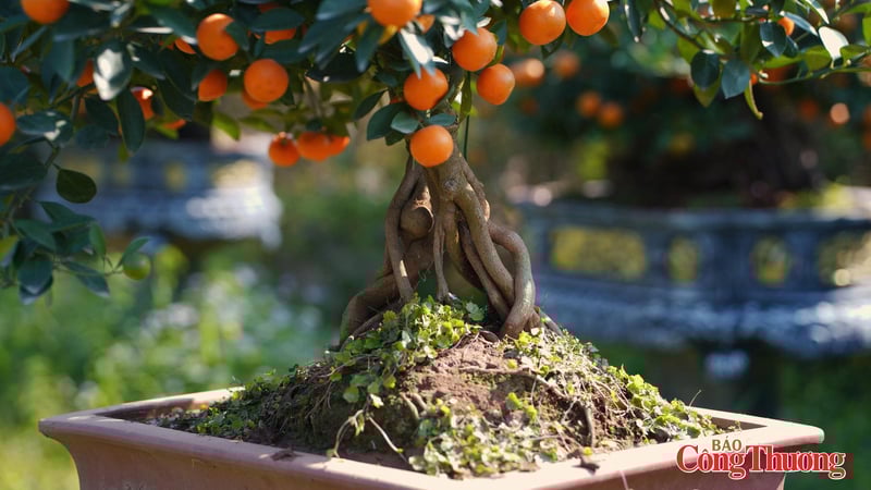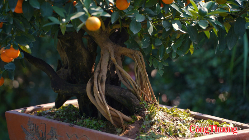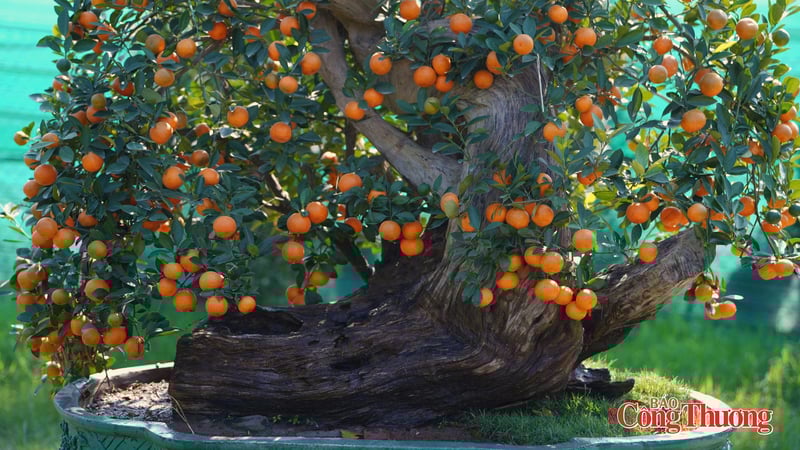 Quất gỗ lũa là sự kết hợp giữa cây quất cảnh và phần gốc, thân gỗ lũa được tạo hình công phu. Ảnh: Thái Mạnh