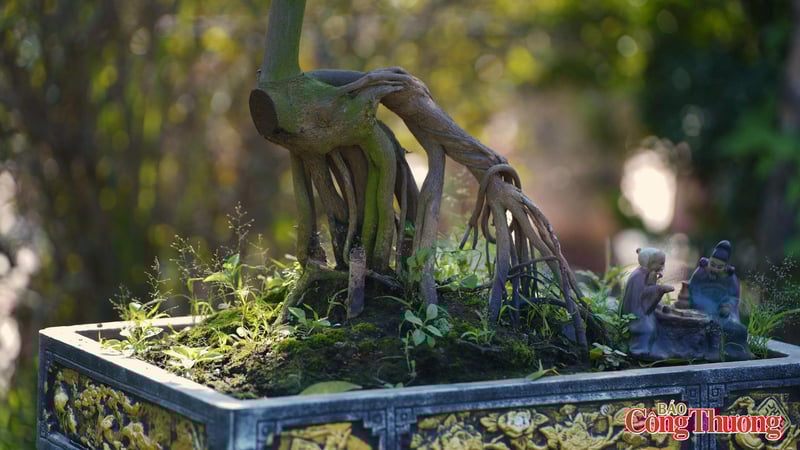 Những khối gỗ xù xì, uốn lượn mang vẻ đẹp cổ kính, được khéo léo ghép cùng thân quất. Ảnh: Thái Mạnh