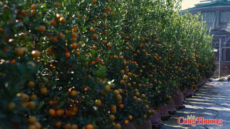 Từng chậu quất được xếp ngay ngắn, thẳng hàng đợi mang đến tay khách hàng. Ảnh: Thái Mạnh