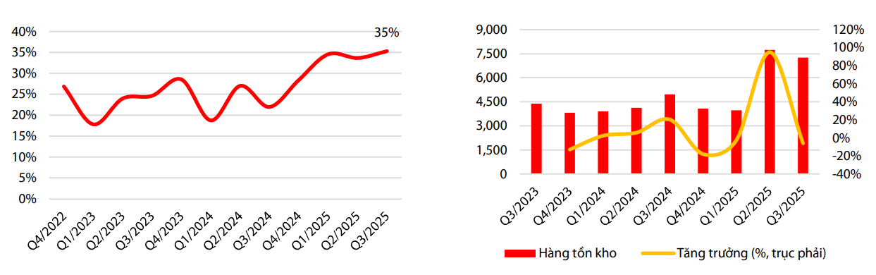 margin: 15px auto;" />Trong quý III/2025, doanh nghiệp ghi nhận 1.238 tỷ đồng doanh thu, cao gần bốn lần so với cùng kỳ. Mảng khu công nghiệp bắt đầu đóng góp với giá trị 636 tỷ đồng tương ứng 25 ha cho thuê tại Đồng Văn III. Nhờ đó, biên lợi nhuận gộp tăng lên 35,3%, cao hơn đáng kể mức 21,95% của cùng quý năm 2024. Tổng tài sản đến cuối quý III đạt 13.096 tỷ đồng, trong đó hàng tồn kho chiếm 7.264 tỷ đồng, phản ánh tiến độ tài chính tại các dự án đô thị lớn mà doanh nghiệp đang triển khai.