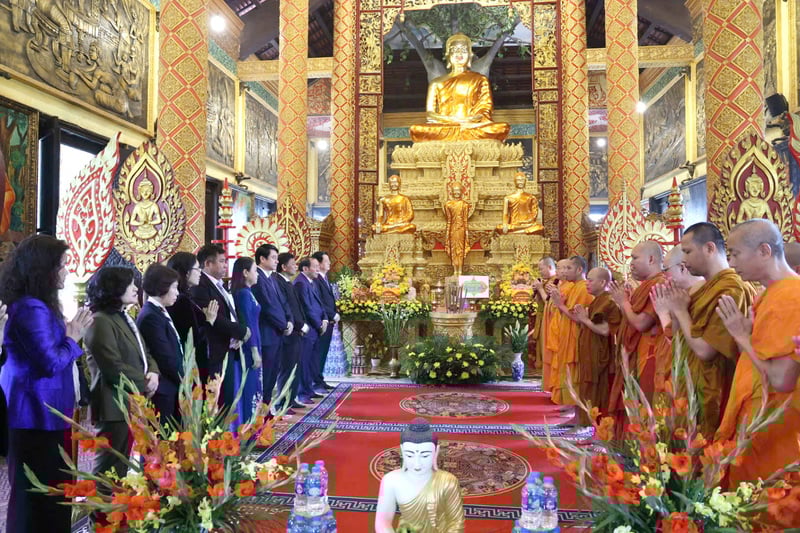Phó Thủ tướng Mai Văn Chính và các đại biểu dâng hương tại chùa Khmer.