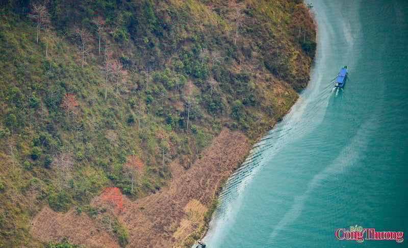 Từ trên cao nhìn xuống, sắc đỏ của hoa xen lẫn màu xanh ngọc của dòng nước, hòa quyện với màu xám của đá núi, tạo nên một bức tranh sơn thủy hữu tình hiếm có. Ngồi trên thuyền xuôi dòng Nho Quế, du khách có thể cảm nhận trọn vẹn vẻ đẹp ấy, một vẻ đẹp vừa hùng vĩ, vừa nên thơ, cho ta cảm giác khoan thai, bình yên.