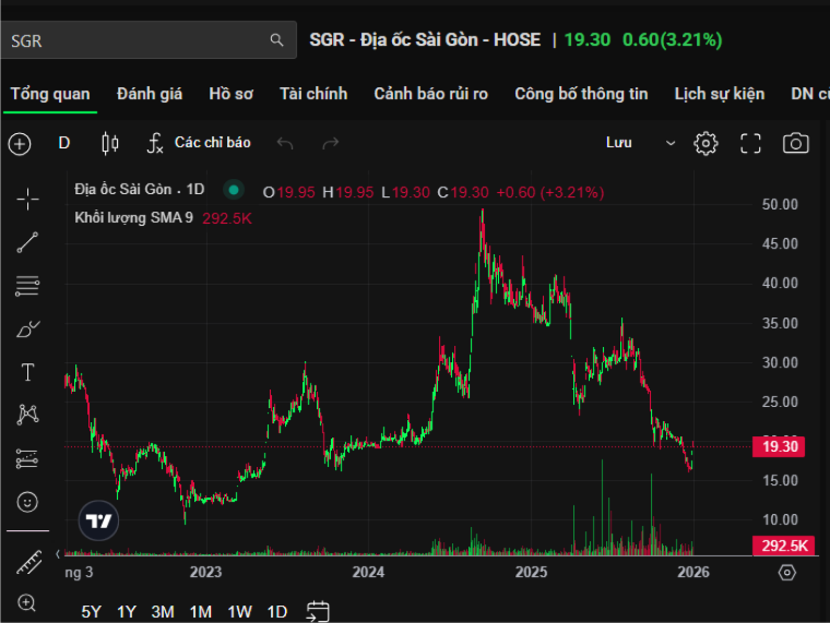Trên thị trường chứng khoán, cổ phiếu SGR ghi nhận tín hiệu khởi sắc rõ nét khi tăng trần liên tiếp trong hai phiên giao dịch gần nhất. Kết phiên ngày 29/12, SGR đóng cửa tại mức 18.700 đồng/cổ phiếu, tăng 1.200 đồng so với phiên liền trước.